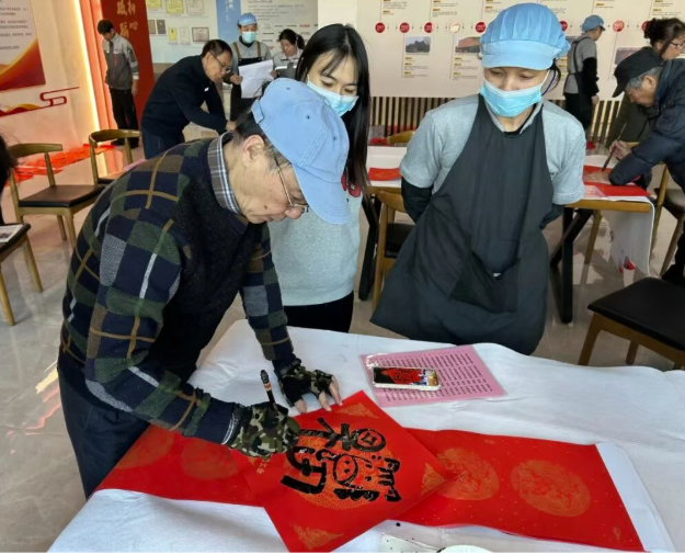 活動伊始,員工們陸續(xù)前來。大家駐足于 “春聯(lián)展示區(qū)” ,每一副都承載著對新年的美好祝愿。
